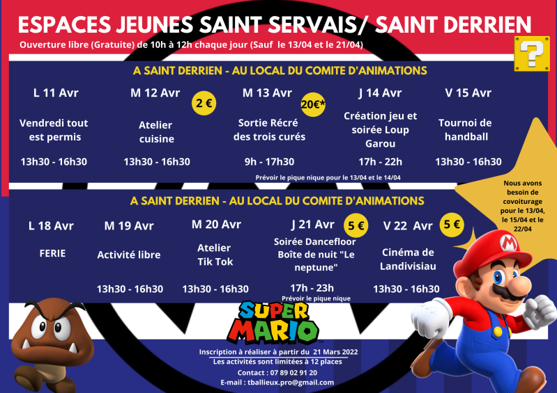 L'Espace jeunes de St Servais/ St Derrien, enregistre 111 inscriptions sur les après-midi programmées et 25 présences sur les matinées. Prés de 40 enfants inscrits sur cette période !